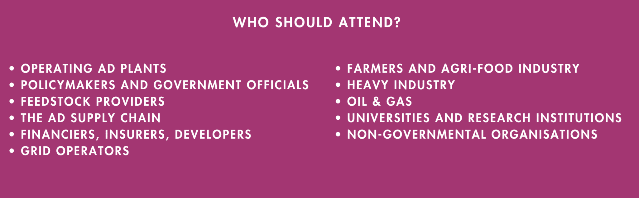 This year we will also have practical hands-on workshop-style breakouts to illuminate new revenue streams for existing plant developers and operators; unveiling a new AD Decision-Making Tool for those who want to find out more about the sector to understand if it is the right solution for them and also specific, and bespoke sessions aimed at farmers and small on-farm AD operators before closing on a session focusing on investment.