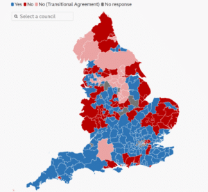 On the BBC website, there is a map of councils with three categories:
