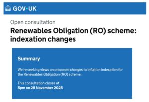 On 31 October the Government published a consultation on the Renewables Obligation, essentially proposing to freeze or at least change the indexing of payments relative to inflation – changing the base of Renewable Obligations Certificates from RPI to CPI.